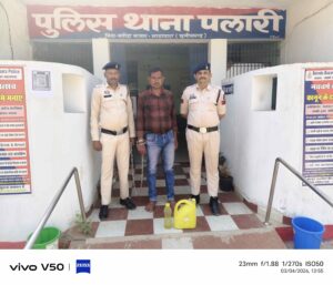 समाधान सेल की सटीक सूचना पर पलारी पुलिस की दबिश, बांसबिनौरी में अवैध महुआ शराब बेचता आरोपी रंगे हाथ गिरफ्तार, 6 लीटर जब्त