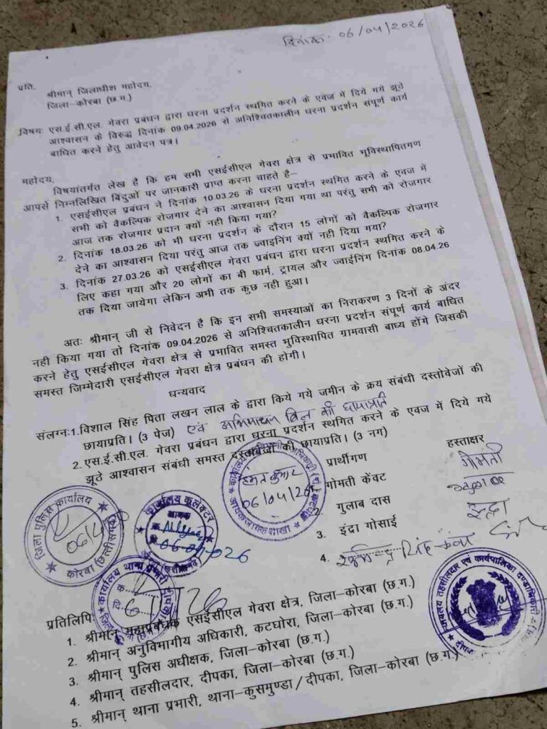 रोजगार वादों पर टकराव गेवरा में भू-विस्थापितों की चेतावनी, 9 अप्रैल से काम बंद आंदोलन संभव