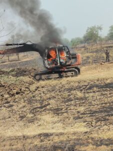 करदा गांव में जेसीबी मशीन में लगी आग, चालक की सूझबूझ से टला बड़ा हादसा