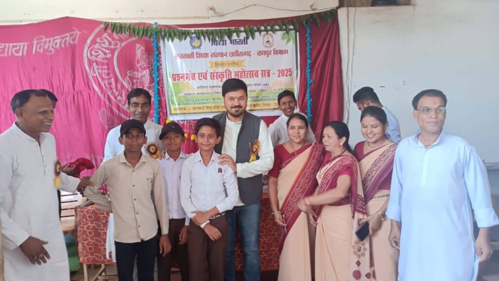 खरोरा -:  07 अक्टूबर 2025 शिशु मंदिर खरोरा एवं शासकीय शिशु मंदिर उच्च माध्यमिक विद्यालय, खरोरा के विद्यार्थियों ने संस्कृति महोत्सव 2025-26 में शानदार प्रदर्शन करते हुए विद्यालय और क्षेत्र का नाम रोशन किया है। विद्यालय की दो होनहार छात्राओं, कनक देवांगन और सौम्या वर्मा, का चयन आगामी क्षेत्रीय स्तरीय प्रतियोगिता के लिए हुआ है, जो 12 से 14 अक्टूबर तक जबलपुर-देवास में आयोजित की जाएगी। यह उपलब्धि विद्यालय परिवार के लिए गर्व का विषय बन गई है।