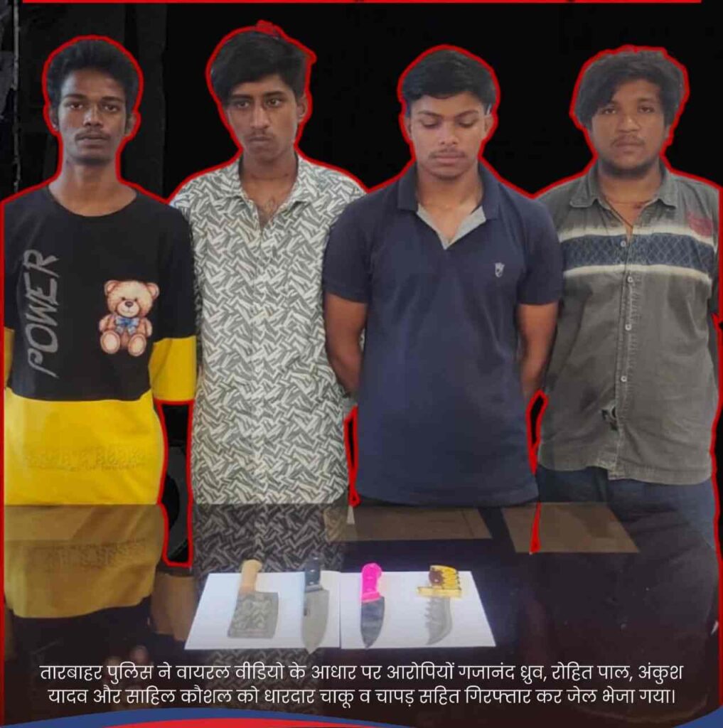 वायरल वीडियो के आधार पर चारों युवकों को गिरफ्तार किया गया आरोपियों के कब्जे से धारदार चाकू और चापड़ जब्त किए गए सभी आरोपियों को न्यायिक रिमांड पर जेल भेज दिया गया।