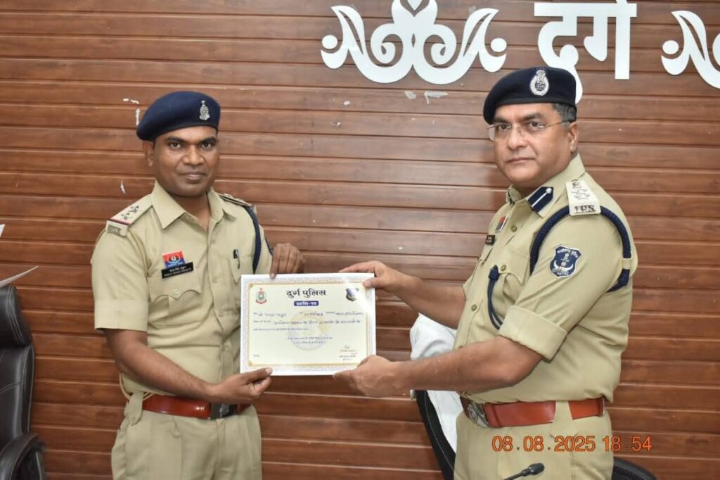 प्रदेशभर में इस विशेष अभियान के दौरान दुर्ग पुलिस ने पहला स्थान प्राप्त किया। इस सफलता में योगदान देने वाले थाना प्रभारी — सुपेला के विजय यादव, जामुल के राजेश मिश्रा, खुर्सीपार के आनंद शुक्ला, पुरानी भिलाई के अंबर भारद्वाज, मंलाई भट्ठी के राजेश साहू, अम्लेश्वर के राम नारायण ध्रुव, नंदनी नगर के पारस सिंह ठाकुर और अमित अंदानी — को उनके उत्कृष्ट कार्य के लिए एसएसपी दुर्ग द्वारा प्रशस्ति पत्र देकर सम्मानित किया गया।