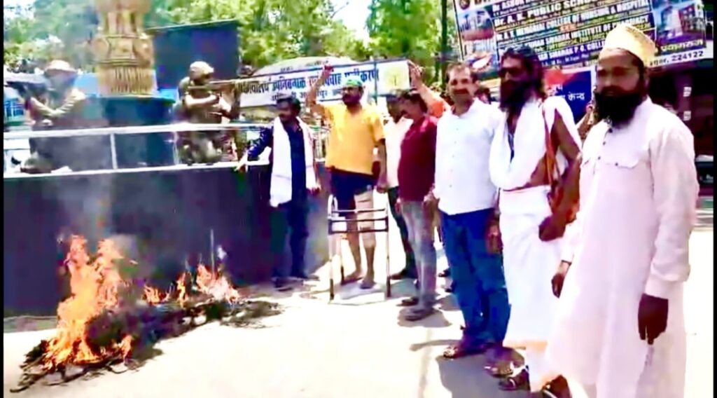 जम्मू कश्मीर पहलगाम में निर्दोष और निहत्थे पर्यटकों पर बर्बर आतंकी कारवाई से पूरा देश आहत है। समाजसेवी बरकत अली ने ईश्वर से करबद्ध प्रार्थना किया कि इस दुःख की घड़ी में परिवार वालों को सहनशक्ति प्रदान करें जहां पूरा देश आक्रोश में है वही आज समाजसेवी बरकत अली आतंकवादियों का पुतला बनाकर पुरानी तहसील तिराहा अकबरपुर में जूता चप्पल पहन कर आतंकवादियों का पुतला जलाकर विरोध प्रदर्शन किया है और केंद्र सरकार से आग्रह किया है कि सख्त से सख्त कार्रवाई करें ताकि दोबारा इस तरह की घटना भविष्य में न हो पाकिस्तान मुर्दाबाद आतंकवादी मुर्दाबाद का नारा लगाते हुए समाजसेवी बरकत अली के साथ मौलाना इफ्तेखार अहमद मोहम्मद रिजवान राही महेश गुप्ता नरोत्तम तिवारी के साथ दर्जनों लोगों ने विरोध किया