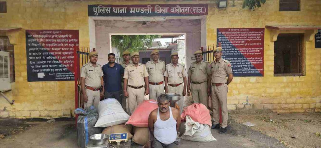 मंडली थाना पुलिस ने “ऑपरेशन विषदमन” के तहत एक बड़ी सफलता हासिल करते हुए 166.700 किलो अवैध डोडा पोस्त, ₹13,200 नकद, डोडा पीसने की मशीन और दो इलेक्ट्रॉनिक कांटे जब्त किए हैं। पुलिस ने मौके से मादक पदार्थों के तस्कर मोहनराम को गिरफ्तार किया है।