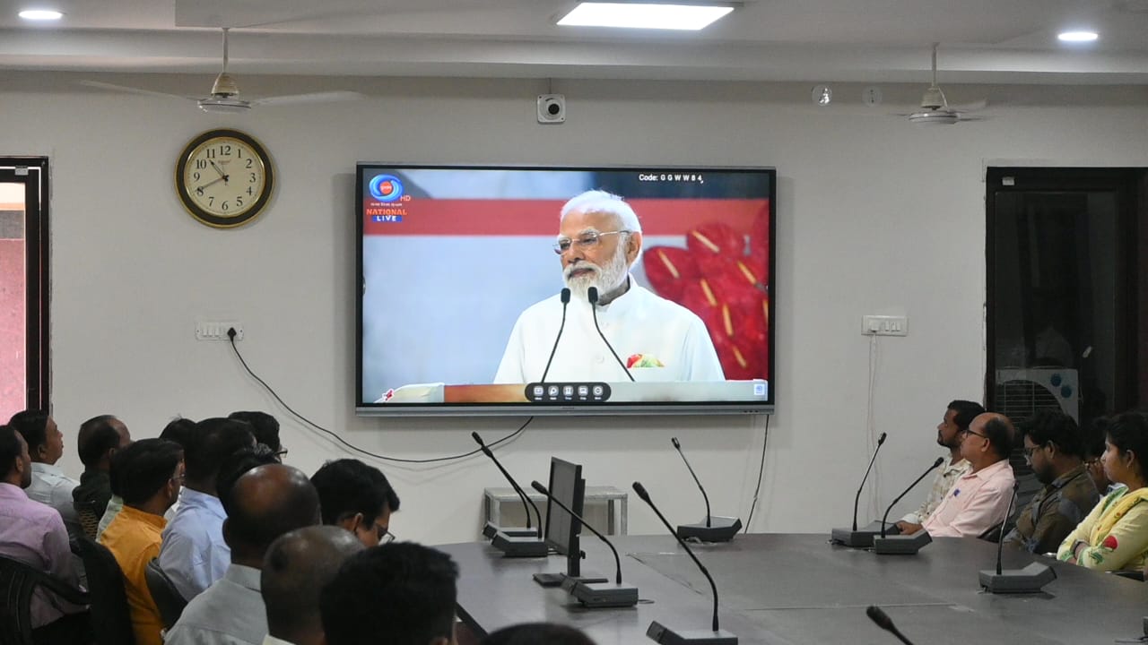 इस अवसर पर प्रधानमंत्री श्री नरेंद्र मोदी द्वारा राष्ट्रीय स्तर पर आयोजित कार्यक्रम का शुभारंभ एवं संबोधन का सीधा प्रसारण सभा कक्ष में टीवी के माध्यम से देखा गया।