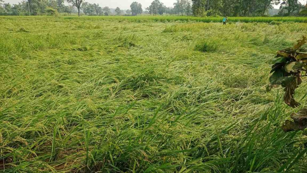 सोनाखान-: बिलाईगढ़ विधानसभा क्षेत्र के वनांचल में लौटते मानसून से किसानों को भारी नुकसान हुआ है, बेमौसम बारिश से खड़ी फसल पूर्ण रूप से खेत में गिर गई है, और सड़ने जा रही है, जिससे किसानों को भारी नुकसान का सामना करना पड़ रहा है, वनांचल क्षेत्र के ब्लॉक कांग्रेस कमेटी अध्यक्ष, युधिष्ठिर नायक ने बताया कि पटवारी, तहसीलदार, एसडीएम के माध्यम से हमने छत्तीसगढ़ शासन से फसल क्षति मुआवजा की मांग की है, ऐसी विषम परिस्थिति में छत्तीसगढ़ के किसान सरकार पर आस लगाए बैठी हैं, मुख्यमंत्री विष्णु देव सरकार को किसानों के साथ इस समय खड़े होकर उचित मुआवजा राशि देनी चाहिए।