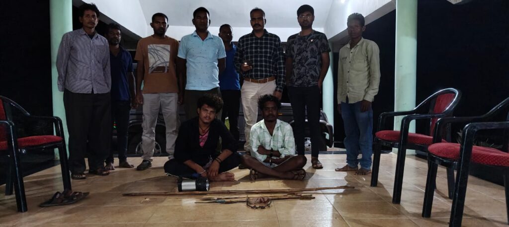 ये दोनों आरोपी मोटरसाइकिल (क्रमांक CG 06 HB 9589) से वन क्षेत्र में घुसते पाए गए। तलाशी के दौरान उनके पास से तीर-कमान, टॉर्च, मोंगरी, चादर सहित शिकार में प्रयुक्त अन्य सामग्री बरामद की गई।