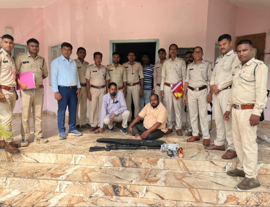 वन विभाग की टीम द्वारा वन एवं वन्यप्राणियों के सुरक्षा हेतु रात में वन गश्त के दौरान परिक्षेत्र कोठारी बारनवापारा अभ्यारण्य क्षेत्र के कक्ष क्रमांक 223 पूर्व कोठारी एवं परिक्षेत्र सोनाखान के नवागांव के आरक्षित वन क्षेत्र में कक्ष क्रमांक 247 वनोपज जांच नाका नवागांव में रात्रि 10:30 बजे कोठारी क्षेत्र से आ रहे वेगानार वाहन को रोककर जांच किया गया। जिसमें बंटी कुमार मैथ्यूज वल्द आर्थर बेंजामिन ग्राम कटगी तहसील कसडोल जिला बलौदाबाजार,सुरेंद्र फरमान दास वल्द राजेंद्र कुमार दास सुभाष ब्लॉक कोरबा द्वारा अपने वेगानार क्रमांक CG-12-AU – 1332 के अन्दर एयर गन , टॉर्च, 2नग मोबाइल आदि सामग्री बरामद हुई।आरोपियों द्वारा उक्त सामग्री को बारनवापारा अभ्यारण्य क्षेत्र में शिकार करने के उद्देश्य से रखा गया था जिसको वन्यप्राणी संरक्षण अधिनियम 1972 एवं आयुध अधिनियम 1959 के तहत कार्यवाही किया गया। उपरोक्त दोनों आरोपी को गिरफ्तार कर न्यायालय प्रथम श्रेणी बलौदाबाजार के समक्ष प्रस्तुत किया गया। न्यायालय बलौदाबाजार के द्वारा दोनों आरोपी को न्यायिक हिरासत में जेल दाख़िला किया गया।