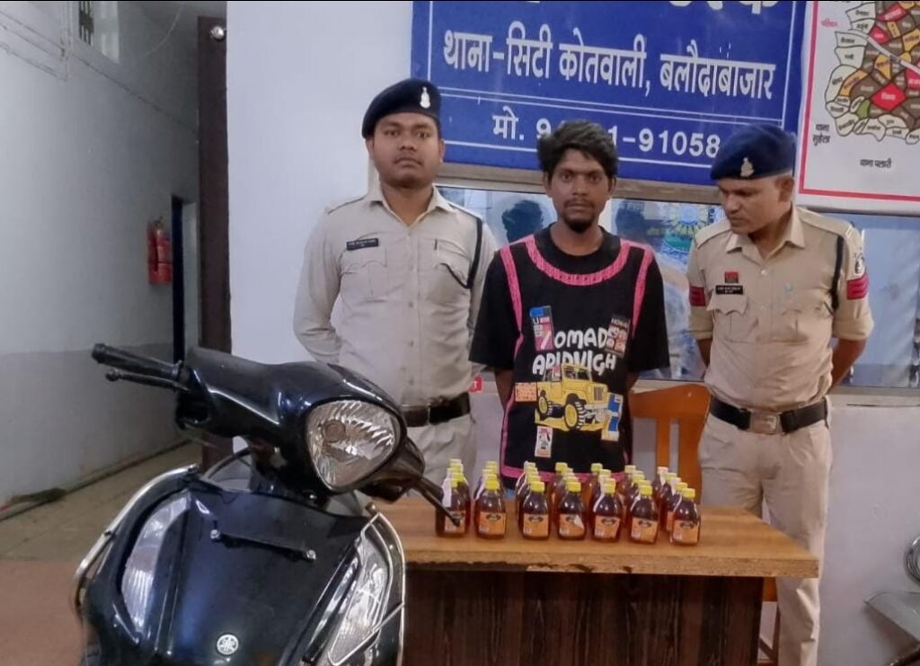 थाना सिटी कोतवाली दिनांक 27.06.2025″समाधान सेल” हेल्पलाइन नंबर की सहायता से अपराधिक कृत्यों में संलिप्त आरोपियों की घरपकड़ में मिल रही है, लगातार कामयाबी।आरोपी को अवैध रूप से स्कूटी के माध्यम से शराब बिक्री करते हुए देवरहा तालाब के पास पुरानी बस्ती बलौदाबाजार में रंगे हाथों किया गया गिरफ्तार*।आरोपी से ₹3500 कीमत मूल्य का 35 पाव देशी मसाला शराब एवं बिक्री रकम ₹300 किया गया जप्त।