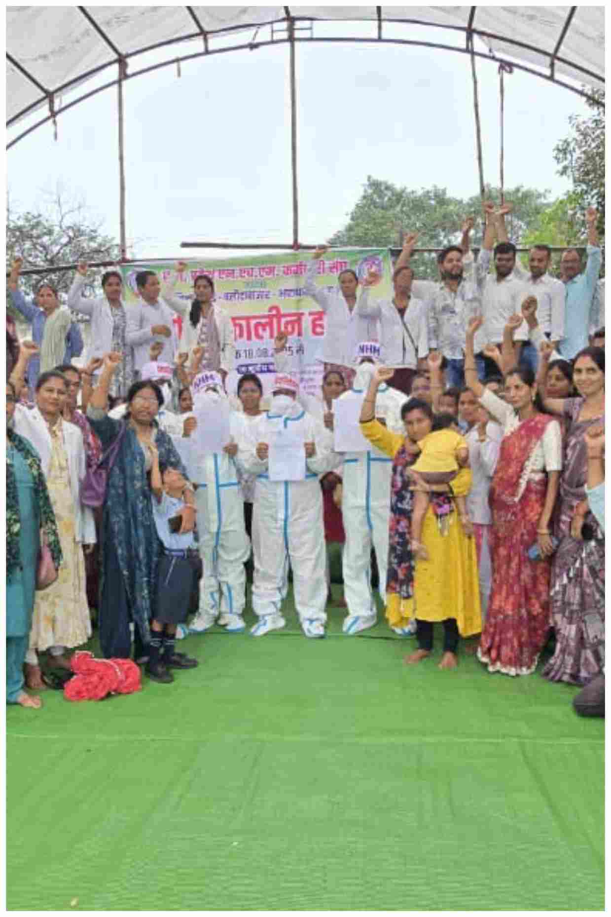 बलौदाबाजार जिला मुख्यालय सहित प्रदेश के सभी 33 जिला मुख्यालय में राष्ट्रीय स्वास्थ्य मिशन (NHM) के कर्मचारी अपनी 10 सुत्रीय मांगों को लेकर तपती गर्मी और बिजली तड़कती बरसात में 30 दिनों से धरने पर बैठे हैं।