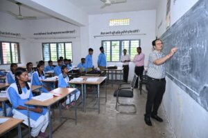 कक्षा दसवीं के छात्रों को उन्होंने पाइथागोरस प्रमेय को सरल तरीके से समझाया और शिक्षा की गुणवत्ता बढ़ाने पर जोर दिया।