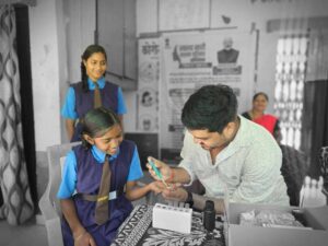 बलौदाबाजार-: 19 सितम्बर 2025/ स्वस्थ्य नारी सशक्त परिवार अभियान के अंतर्गत आयुष्मान आरोग्य मंदिर रिसदा की टीम द्वरा शुक्रवार को कस्तूरबा गांधी बालिका आवासीय विद्यालय में स्वास्थ्य शिविर का आयोजन किया गया। शिविर में किशोरी बालिकाओं का स्वाथ्य परीक्षण करते हुए सिकलिंग एवं हीमोग्लोबिन इत्यादि की जांच की गई।