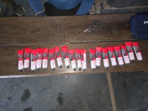 आरोपी की सुपर स्प्लेंडर बाइक (CG-13-J-8286) की डिक्की से ओमनी कंपनी का CHEMICAL VULCANIZING FLUID नामक 19 ट्यूब जब्त हुईं।