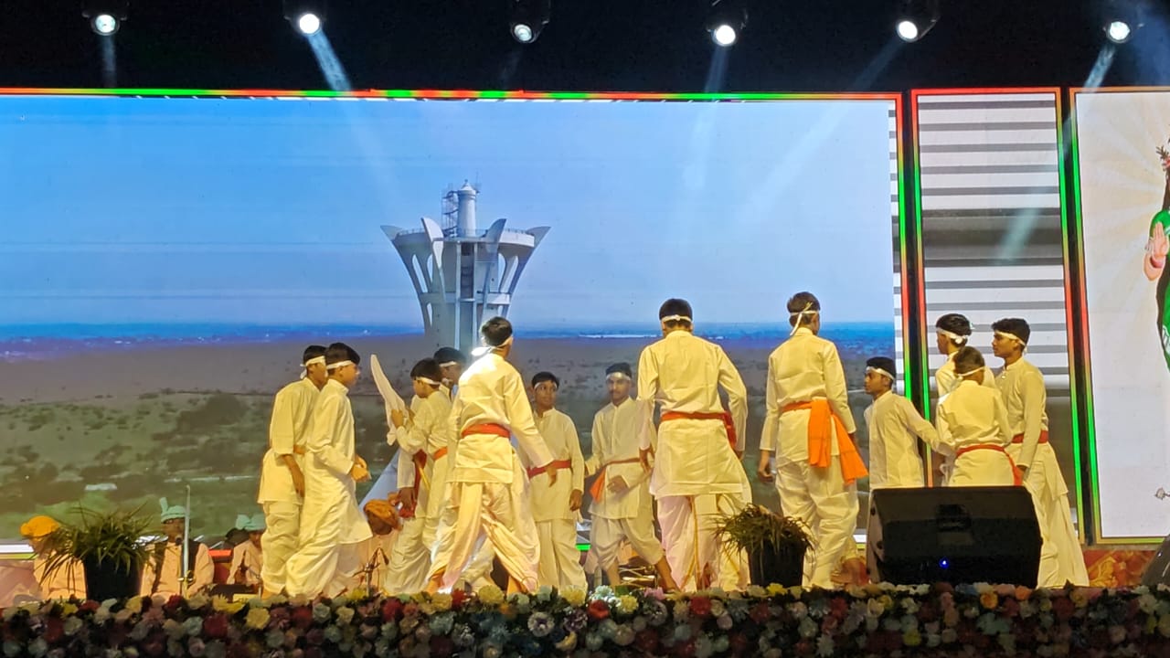 स्कूली विद्यार्थियों द्वारा प्रस्तुत पारंपरिक नृत्य और गीत