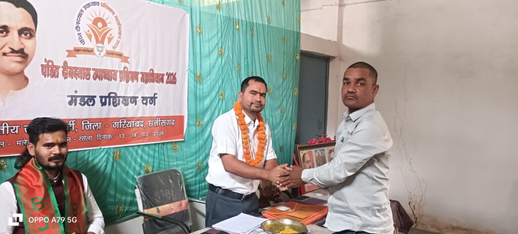 छुरा /गरियाबंद:- भारतीय जनता पार्टी के पंडित दीनदयाल उपाध्याय प्रशिक्षण महाअभियान 2026 के अंतर्गत मलेवांचल मंडल, जिला गरियाबंद में मंडल प्रशिक्षण वर्ग का आयोजन किया गया। इस प्रशिक्षण कार्यक्रम में कार्यकर्ताओं को संगठन की मजबूती और बूथ स्तर पर सक्रियता बढ़ाने को लेकर महत्वपूर्ण मार्गदर्शन दिया गया।