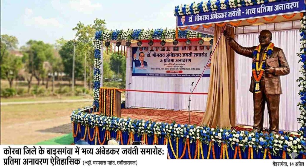 कोरबा। जिले के बाइसगंवा मुख्यालय छुइहापारा (कोरबी) में भारत रत्न डॉ. भीमराव अंबेडकर की जयंती के अवसर पर भव्य जिला स्तरीय कार्यक्रम का आयोजन किया जा रहा है। इस खास मौके पर बाबा साहब की आदमकद प्रतिमा का अनावरण किया जाएगा, जिसे लेकर क्षेत्र में उत्साह का माहौल है।