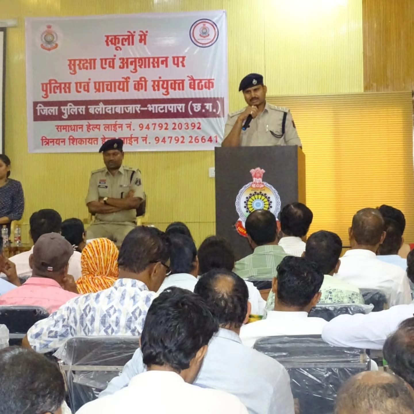 बलौदाबाजार:- स्कूलों में छात्र-छात्राओं के लिए सुरक्षित और अनुशासित वातावरण तैयार करने के उद्देश्य से हाल ही में पुलिस विभाग और स्कूल प्राचार्यों की एक संयुक्त बैठक आयोजित की गई। इस बैठक में पुलिस अधीक्षक श्रीमती भावना गुप्ता मुख्य रूप से उपस्थित रहीं, जिन्होंने स्कूली सुरक्षा से जुड़े विभिन्न महत्वपूर्ण पहलुओं पर विस्तार से चर्चा की। 🛡️
