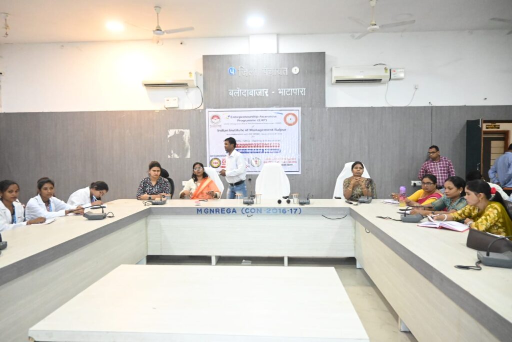 बलौदाबाजार, 8 मार्च 2026। जिला पंचायत सभागार बलौदाबाजार में सोमवार को उद्यमिता को बढ़ावा देने के उद्देश्य से उद्यमिता जागरूकता कार्यक्रम का आयोजन किया गया। यह कार्यक्रम आईआईएम रायपुर एवं डीसी एमएसएमई, भारत सरकार के संयुक्त तत्वावधान में आयोजित किया गया। कार्यक्रम में युवाओं, स्व-रोजगार में रुचि रखने वाले प्रतिभागियों तथा विभिन्न विभागों के प्रतिनिधियों को उद्यमिता की महत्वपूर्ण अवधारणाओं से अवगत कराया गया।