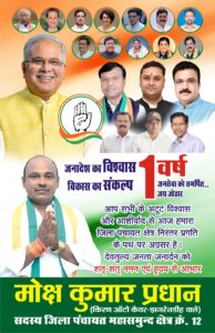 महासमुंद जिला पंचायत सदस्य मोक्ष कुमार प्रधान ने जनसेवा के एक वर्ष पूर्ण होने पर जताया आभार