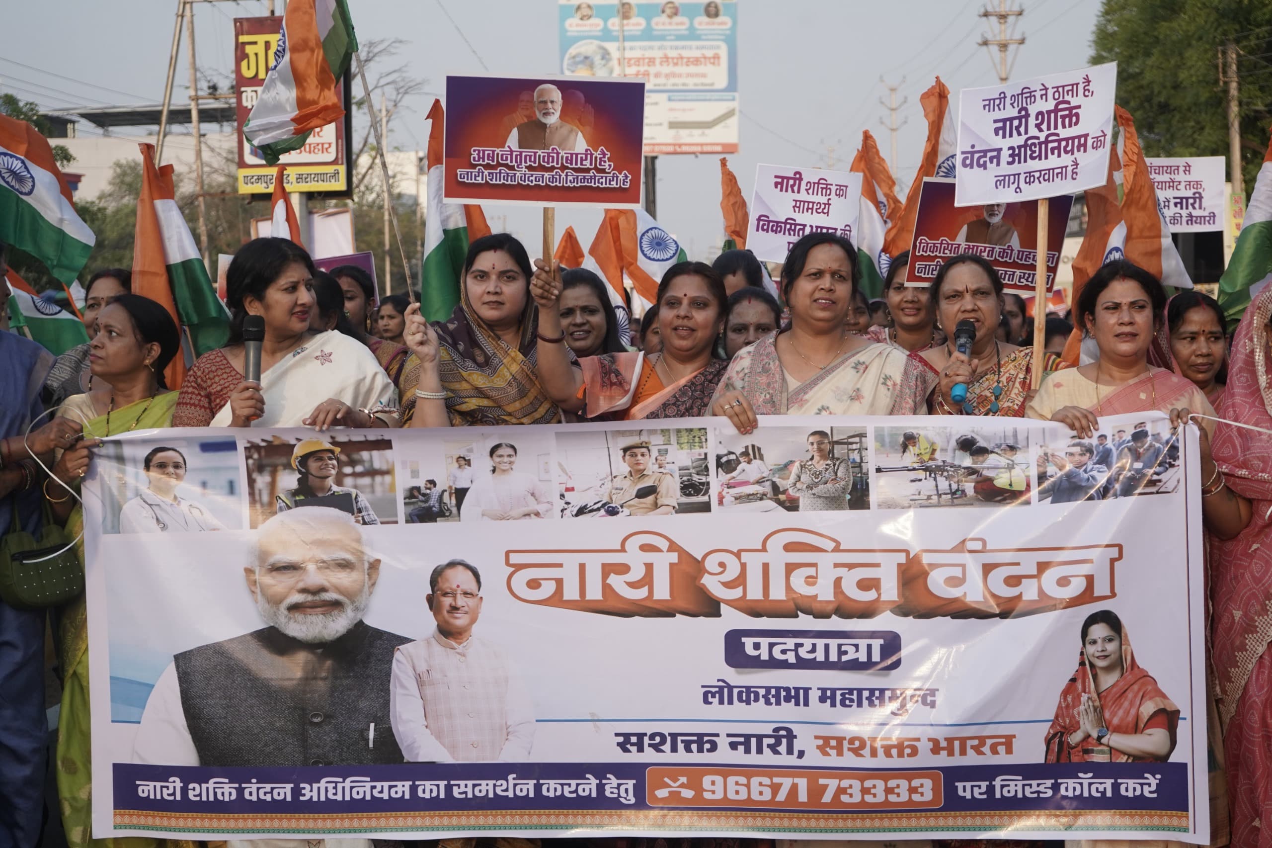 पारंपरिक वेशभूषा में सज्जित महिलाओं ने हाथों में तख्तियां और बैनर लेकर ‘नारी शक्ति का सम्मान, देश का अभिमान’ जैसे नारे लगाए। पदयात्रा नगर के प्रमुख मार्गों से गुजरी, जिससे आमजन में महिला सशक्तिकरण को लेकर जागरूकता का संदेश गया। इस दौरान अधिनियम के समर्थन में हस्ताक्षर अभियान भी चलाया गया।