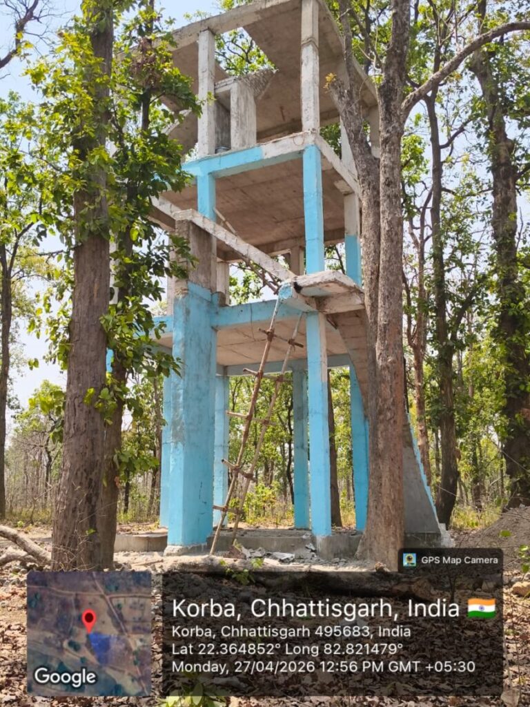 कोरबा। वन मंडल कोरबा के अंतर्गत भुलसीडीह में निर्माणाधीन वॉच टॉवर इन दिनों गंभीर अनियमितताओं को लेकर चर्चा में है। स्थानीय सूत्रों के अनुसार निर्माण कार्य में तय तकनीकी मानकों की अनदेखी की जा रही है, जिससे न केवल गुणवत्ता बल्कि सुरक्षा को लेकर भी सवाल खड़े हो गए हैं।